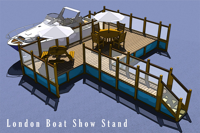 This is one such project, which was to design a raised deck area for an exhibitor at the London Boat Show.