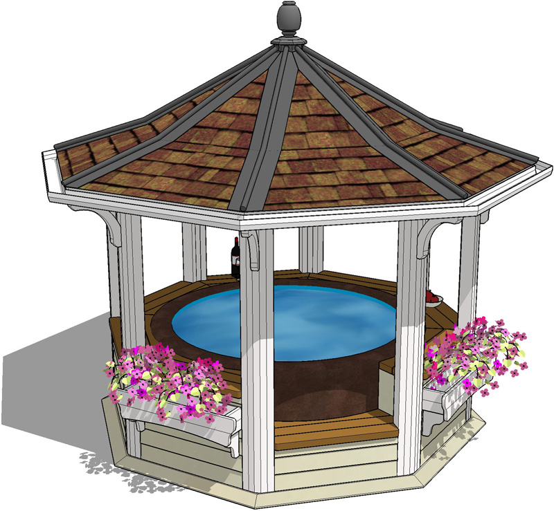 Illustration of a proposed hot tub enclosure for a garden buildings manufacturer.